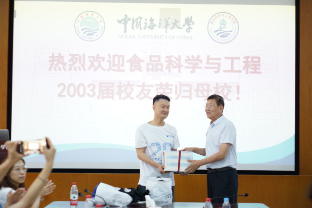 2023年6月17日,中国海洋大学食品科学与工程99级毕业20周年返校座谈会在西海岸食工楼106会议室举行,食品科学与工程学院书记辛华龙、院长薛长湖、副院长徐宋娟、林洪教授、2003届食工班主任牟海津教授及退休教师管斌老师参加了仪式。来自全国各地的18名校友参加了仪式,其他30余名校友通过“腾讯会议”平台观看了直播。
