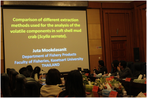 研讨会由牟海津副院长主持。首先,薛长湖院长介绍了人妻AV 的教学与科研情况,Suriyan Tunkijjanukij 院长介绍了泰国来访的教师和农业部官员。随后,泰国农业部水产部门官员Supakant Chaichotranunt先生作了题为:“泰国糙海参的养殖与繁育”的报告,食品科学与工程学院唐庆娟副教授作了题为:“海参活性成分与加工技术”的报告,泰国农业大学水产学院教师Juta Mookdasanit 博士作了题为:“不同提取方法对锯缘青蟹挥发性成分检测的影响比较”的报告。此次“中-泰”国际合作项目研讨会主要围绕海参的养殖及加工技术展开,整场研讨会气氛高涨,参会人员讨论热烈,食品学院师生均表示受益良多。此次研讨会为双方进一步深入交流与合作夯实了基础。(文/唐庆娟;图/武娟)