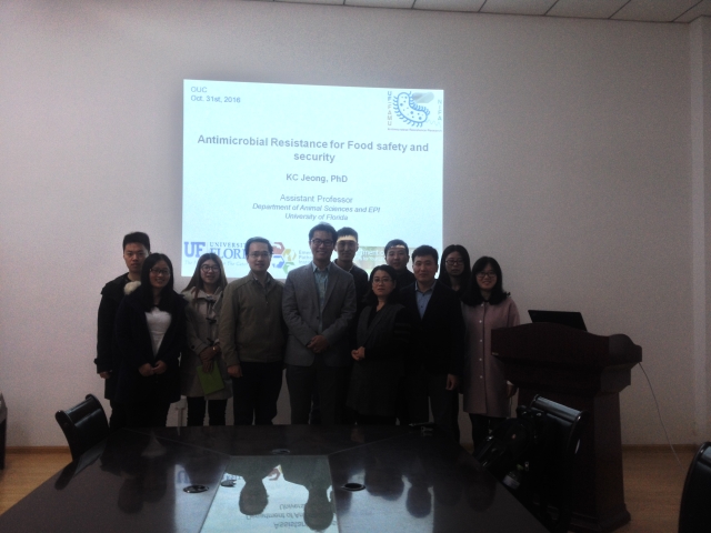 2016年10月31日上午9:30,美国佛罗里达大学Kwang Cheol Jeong教授在六二楼104 做了题为“Antimicrobial Resistance for Food Safety and Security”的学术报告。Jeong教授结合自己的学习、研究经历,系统介绍了他在研究细菌抗生素抗性基因的产生、分布、作用机理、传播等方面十多年来的成果和主要结论,并与食品学院与广大师生做了亲切的学术交流。