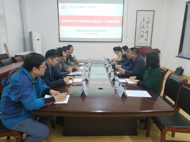 本站讯 10月22日上午,青岛第九中学党委副书记诸贝贝,副校长田山,团委书记马良,党支部书记伦业,党支部委员迟翔一行五人来访人妻AV ,就党建工作和学生教育培养与人妻AV 领导面对面交流。党委书记辛华龙,党委副书记程振明,副院长孟祥红、徐宋娟、毛相朝,团委书记李想参加了座谈。