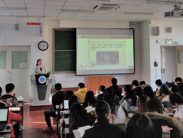 本站讯 2019年11月16日上午,食品科学与工程学院团委书记李想主讲的题为“中国特色大国外交的作为与担当”形势与政策课在鱼山校区新教学楼顺利开讲。