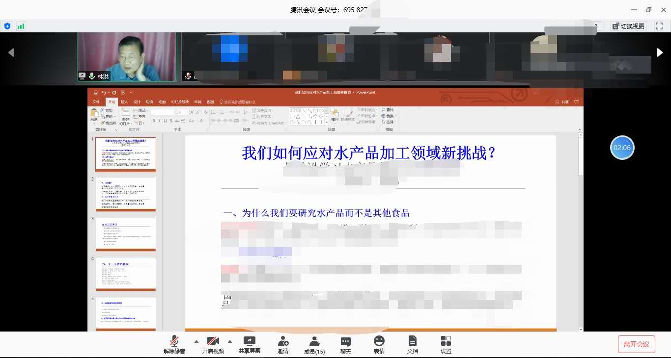 思维碰撞的过程中,学院学术委员会主任、教师党支部第一书记林洪老师面向参与的青年教师就为什么要重视水产品方向的研究、如何将自身研究与水产品加工研究相结合进行了剖析,提出了许多具体和切实可行的建议。林洪老师建议青年教师需要有危机感,应当热爱水产品研究,积极组织和参与相关课题,在复杂信息中找出适合自己的发展方向。