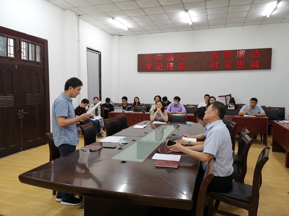 2020年6月23日16点,食品科学与工程学院教师第一党支部委员会换届大会在六二楼104会议室举行。学院党委副书记程振明参加大会,教师第二党支部徐宋娟书记、鞠磊、朱尚清老师参加会议;教师第一党支部共有党员22人,到会19人,符合换届选举要求。会议由食品科学与工程学院教师第一党支部副书记孙建安主持。