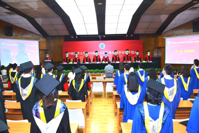 现场全体人员共同观看视频,聆听学校党委书记田辉、校长于志刚对全体2020届毕业生的嘱托。典礼后举行了毕业生学位授予仪式。食品科学与工程学院教授孟祥红、毛相朝分别主持毕业本科生学位授予仪式和毕业研究生学位授予仪式,毕业生8人一组,依次登台,副校长闫菊、学院学位委员会成员为毕业生颁发学位证书,并集体合影留念。