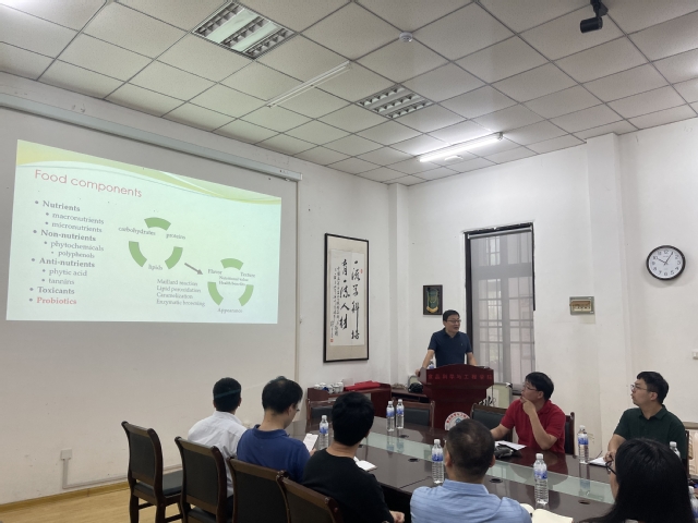 7月13日上午,深圳大学高等研究院王明福教授到访中国海洋大学食品科学与工程学院,并为学院师生做了主题为《膳食多酚对化学反应的调控作用和健康功效》的报告。