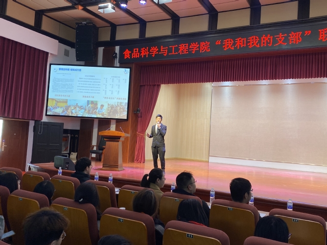 本站讯 为深入学习贯彻党的十九届六中全会精神,进一步激发青年团员爱党爱国之情,2021年11月25日下午,食品科学与工程本科2020级食品科学与工程专业1班、2班团支部在鱼山校区六二礼堂联合举办“我和我的支部”主题团日活动,学院党委副书记、副院长程振明、各班班主任老师、辅导员以及团支部全体成员参加此次活动,学院各团支部代表进行了现场观摩。
