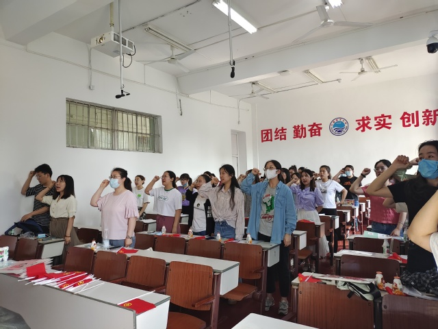 会议最后,发展委员王寒梅带领团员青年重温入团誓词,同唱团歌。同学们面向团旗庄重宣誓,在铿锵有力的誓言中进一步擦亮入团的初心。“我们是五月的花海,用青春拥抱时代。我们是初升的太阳,用生命点燃未来。”在嘹亮整齐的团歌声中,本次团日活动圆满结束。