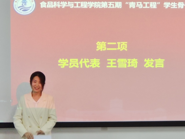 食品科学与工程学院团委书记李想、团委副书记张川,辅导员曹亚楠、吴佩伦、李臣,以及第五期“青马工程”培训班全体学员出席了开班式。仪式由食品科学与工程学院团委书记李想主持。