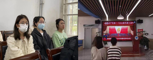 本站讯 2022年10月16日上午10时,中国共产党第二十次全国代表大会在北京隆重开幕。2021级食品科学与工程硕士研究生第二党支部全体党员同志在鱼山和西海岸校区分组收听收看大会开幕会实况,学习贯彻党的二十大精神。