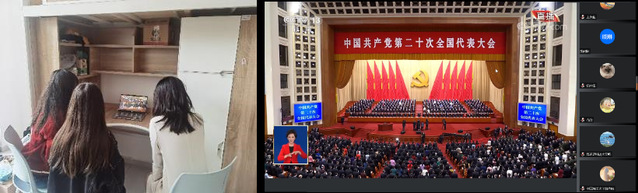 本站讯 10月19日19时,2020级食品科学与工程硕士研究生第一党支部“学习二十大,奋进新征程”主题党日活动顺利开展。10月16日,中国共产党第二十次全国代表大会在北京隆重开幕,支部全体党员集体线上观看学习党的二十大开幕会,并在本次主题党活动中进行心得交流。