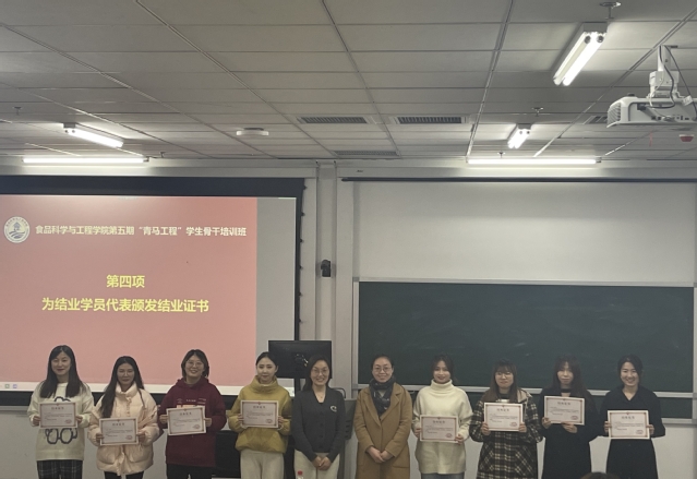 本次结班仪式的顺利召开,标志着食品科学与工程学院第五期“青马工程”学生骨干培训班的圆满落幕。通过本期培训班的课程学习,参训学员受益匪浅,既有思想上的进步与成熟,又有工作能力和学习能力的提升。望全体学员能够在今后的道路上,迎接时代召唤,担当青年责任!