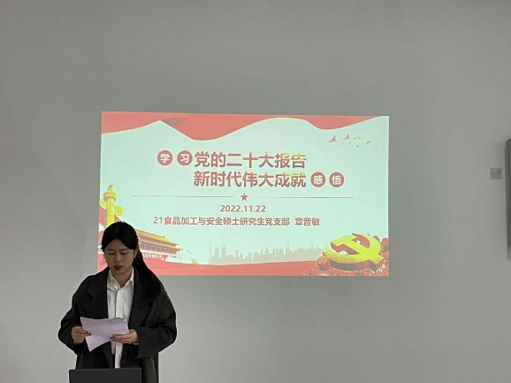 本站讯 11月22日,食品科学与工程学院2021级食品加工与安全硕士研究生党支部以“学习二十大 永远跟党走 奋进新征程”为主题开展的党日活动,在西海岸校区食工楼149会议室顺利开展。