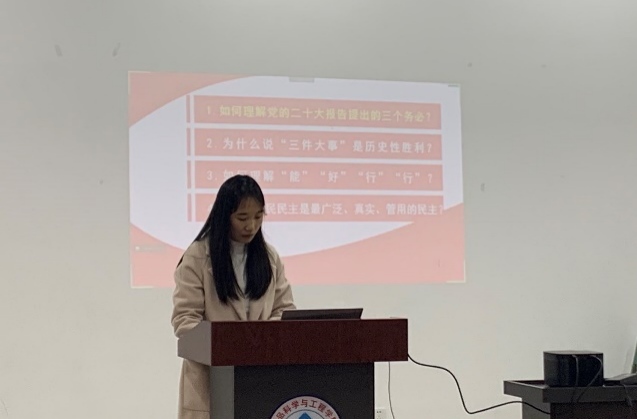 本站讯 为深入学习贯彻党的二十大精神,坚持不懈用习近平新时代中国特色社会主义思想凝心铸魂,按照学校、学院党委的总体要求, 3月23日,2021级生物与医药硕士研究生党支部于食工楼150会议室开展了以“深入贯彻党的二十大精神”为主题的组织生活会。学院党委委员、党支部思想领航员徐宋娟参会指导。