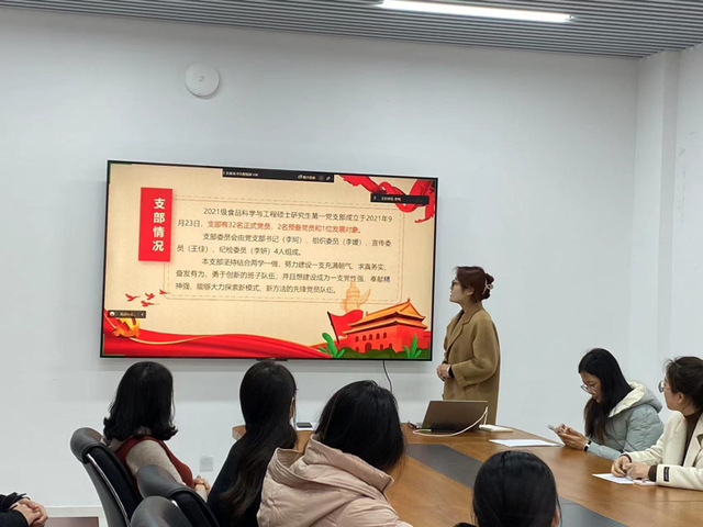 本站讯 2023年3月22日,2021级食品科学与工程学院硕士研究生第一党支部在食工楼202召开了2022年度组织生活会。本次会议由党支部书记李珂主持,党支部思想领航员、学院教授唐庆娟参会指导,全体党员参加会议。