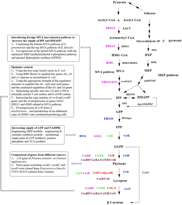 代谢工程可用于获得和提高微生物中β-胡萝卜素的产量,结合高密度发酵,可实现β-胡萝卜素的高水平合成。在每个人都重视自身健康的社会背景下,人们对β-胡萝卜素的需求不断增加,因此以代谢工程、合成生物学合成β-胡萝卜素的方法,具有广阔的应用前景。