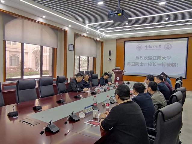 本站讯 近日中国工程院院士、江南大学校长陈卫一行到中国海洋大学食品科学与工程学院调研学科建设情况,中国工程院院士薛长湖、食品科学与工程学院党委书记于德华、院长毛相朝出席有关活动。