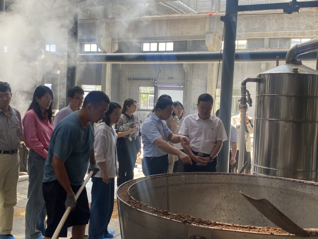 支部成员首先来到青岛市九龙醇酒业有限公司党支部,通过参观制酒生产车间,交流酒品加工技术规范和相关生产卫生安全控制体系,全体党员对食品生产环节有了更具体的认识,对食品人应有的责任和担当有了更深刻的体悟。