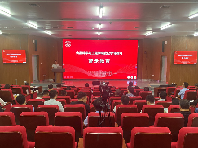 本站讯 近日,为推进党纪学习教育走深走实,进一步加强师德师风建设,强化纪律意识、加强自我约束、提高免疫能力,食品科学与工程学院召开党纪学习教育警示教育会,学院党委书记于德华主持会议并讲话,学院党委委员、班子成员及全体教职工参加会议。
