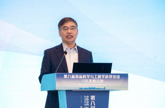 本站讯 4月25日至26日,第八届食品科学与工程学科评议组2025年度会议暨第三届食品科学与工程学科高质量发展论坛在青岛召开。大连工业大学朱蓓薇教授、江南大学校长陈卫教授、华南理工大学赵谋明教授、东北农业大学江连洲教授、南昌大学副校长聂少平教授、西北农林科技大学校长助理刘学波教授、华中农业大学李斌教授、上海海洋大学谢晶教授等第八届食品科学与工程学科评议组专家出席会议。中国海洋大学薛长湖教授主持开幕式。中国海洋大学校长张峻峰出席开幕式并致辞。