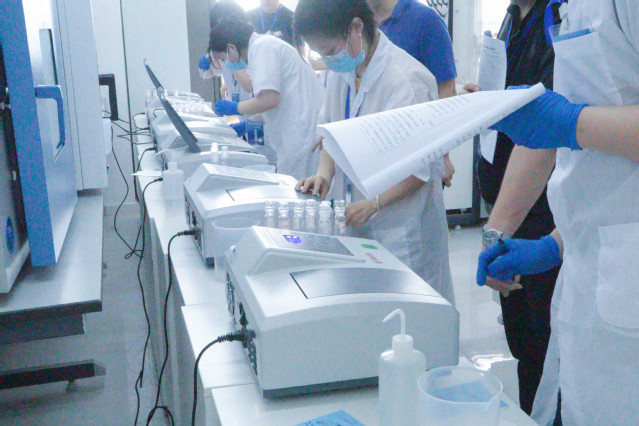 大赛现场气氛紧张有序,参赛选手们全神贯注地投入到各项操作中。在样品前处理区,选手们熟练地进行样品称量、溶解、过滤等操作,动作干净利落;在仪器操作区,选手们沉着冷静,规范操作各类精密仪器,精准读取数据;在数据处理阶段,选手们认真分析数据,撰写检验结果,每一个环节都一丝不苟。