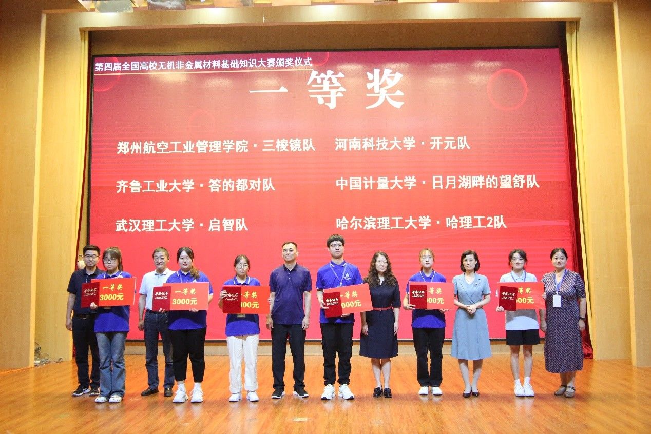 和中国建筑材料联合会专家委员会教育与人力资源学部共同承办的第四届全国高校无机非金属材料基础知识大赛在洛阳举行。人妻AV本科生张淑芳、蒋佳纹、孙浩磊组成的“从容应队”荣获特等奖,王鑫宇、张智航、梁成俊组成的“开元队”荣获一等奖,取得了历史新高。“从容应队”队长张淑芳在大赛闭幕式上作为获奖学生代表发言。