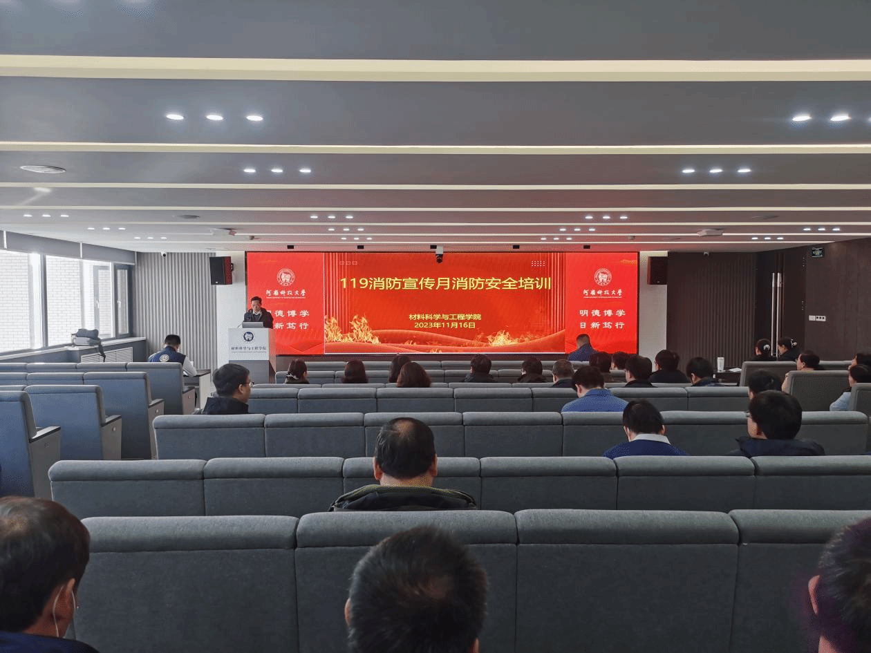 在工科1号楼报告厅开展“119”消防宣传月消防安全培训活动,邀请河南省消防协会义务消防科普宣传服务队教员郭远申做消防安全知识专题培训。人妻AV