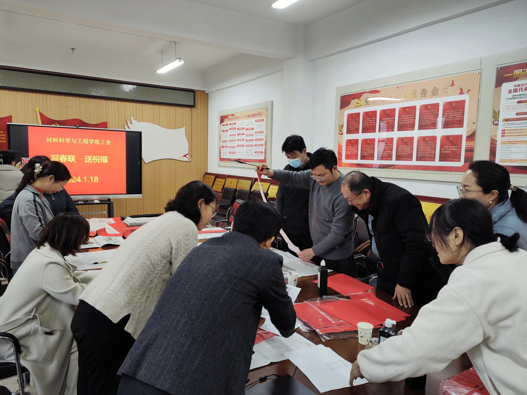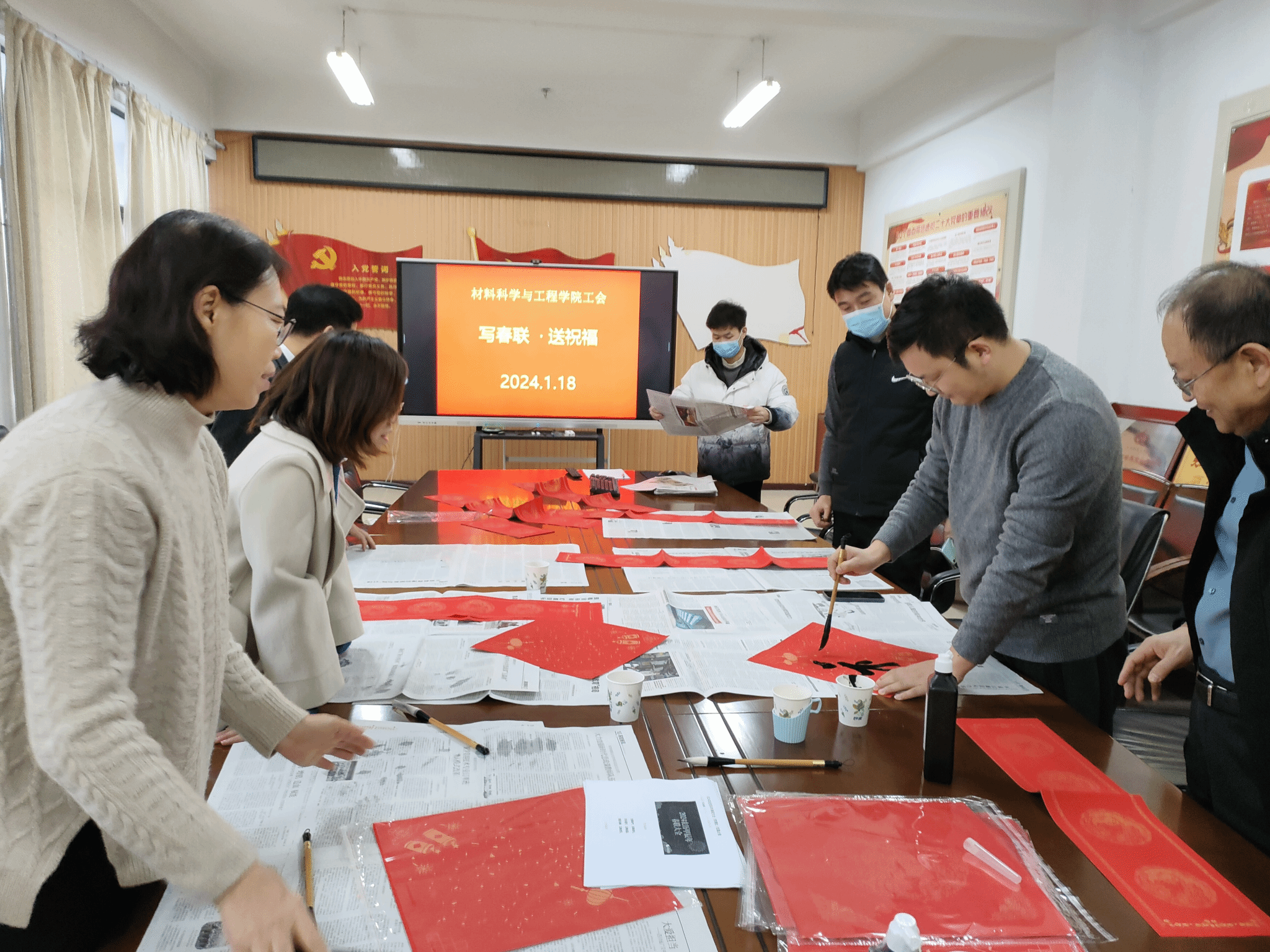 工会组织热心而且有专长的教师在203会议室开展“写春联 送祝福”活动,人妻AV