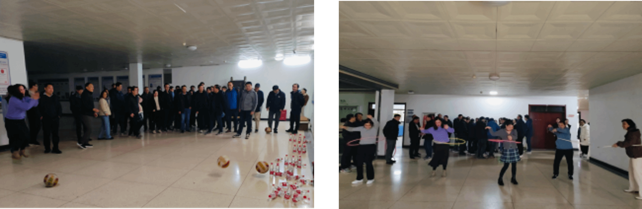2024年12月12日下午,活动在工科一号楼中厅开始。首先进行的是足式保龄球活动,现场气氛热烈热,笑声不断;趣味呼啦圈活动也受到老师们的广泛欢迎,尤其女老师们更是踊跃参加,一展风采。大家纷纷表示,工会组织开展适宜、灵活、多样的体育健身活动,既提高了大家主动参与健身的意识,激发了健身热情,又增强了集体凝聚力,营造了团结和谐的良好氛围。