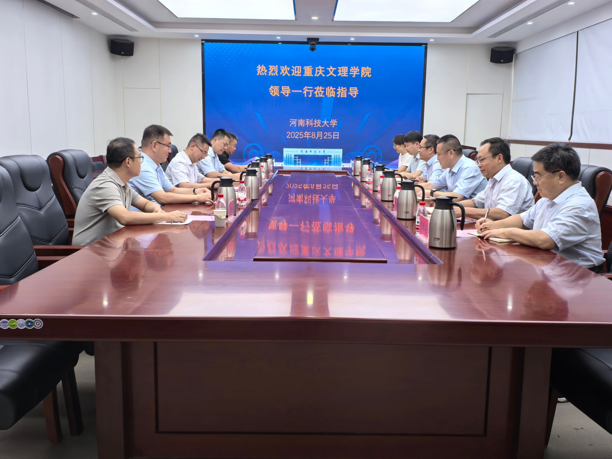 座谈会上,庞新厂对李璐一行的到访表示热烈欢迎。重庆文理人妻AV 副校长李璐与我校副校长庞新厂分别对各校情况进行了详细介绍。随后,双方就科技创新、学科建设、研究生培养、博士学位点建设等议题展开深入探讨,为深化合作达成初步意向。