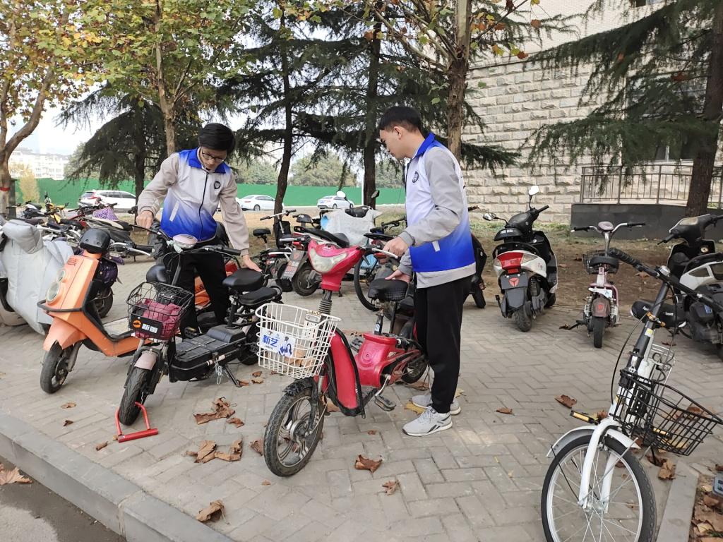 宿舍区作为同学们的生活区,本应是宽敞、舒适、整洁的,却因各类交通工具车的不规则摆放杂乱不堪。党员志愿者和入党积极分子志愿者们一辆辆扶起歪倒的车子、一辆辆摆正乱停的车子、一次次耐心地指引同学们有序停车、一次次捡起地上和车筐里的垃圾。随着该项活动的深入,宿舍区和工科1号楼前的车辆停放越来越整齐,这不仅是志愿者的工作成果,更是越来越多同学养成良好习惯的实践成效。