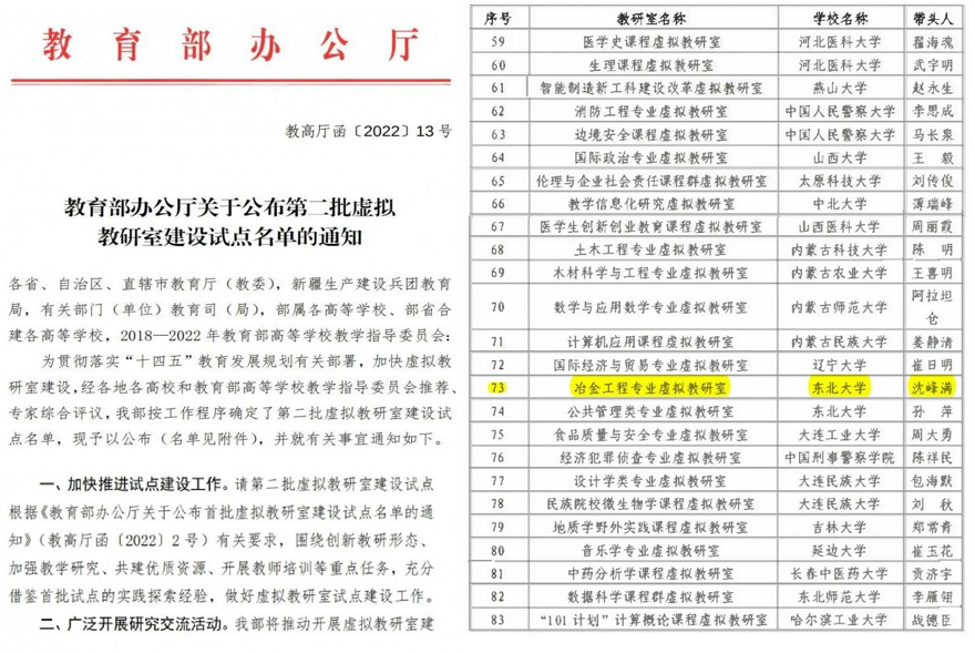 “冶金工程专业虚拟教研室” 于2022年5月获教育部批准建设,由东北大学牵头,联合安徽工业大学、重庆科技人妻AV