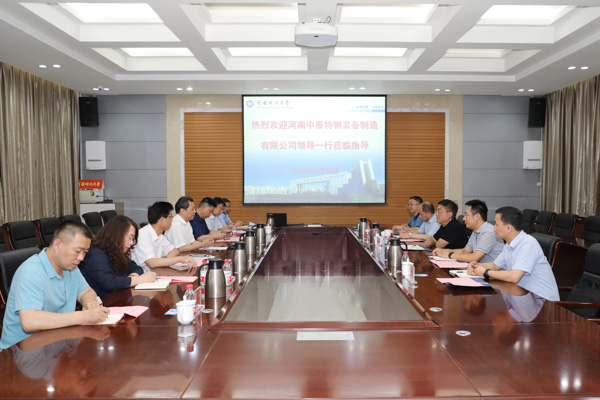 6月24日上午,河南中原特钢装备制造有限公司总经理马强、副总经理王怡群、总工程师高全德、人力资源部长胡乃军等一行5人到我校交流访问。校长孔留安、副校长李全安会见马强一行。