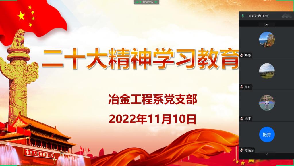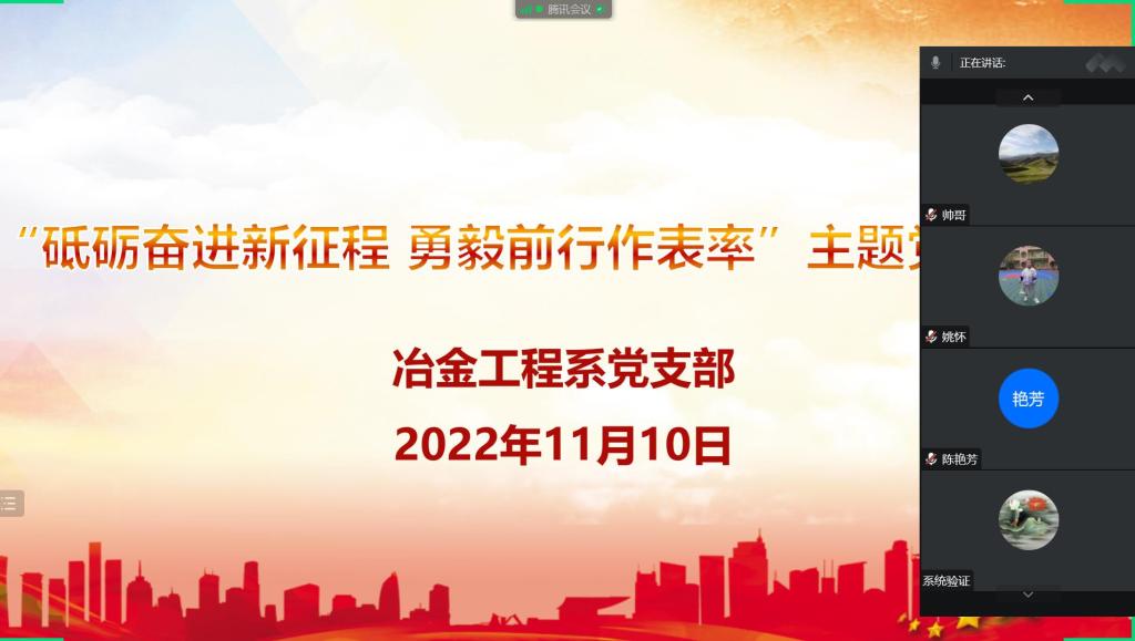 冶金工程系党支部通过线上会议形式,召开了“砥砺奋进新征程 勇毅前行作表率”主题党日活动。活动由支部书记汪宙主持,支部全体成员参加。