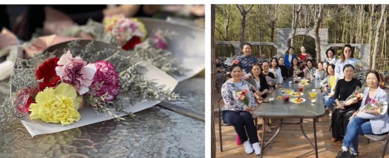 下午3:00大家在从政坊公园门口集合,沿着园内蜿蜒的小径,迎着和煦的春风怡然自得地漫步到青年茶社内。各位女教工精神焕发,在结束花艺活动后,在公园内赏春光、闻花香、品茶味,时而三五成群拍照合影,时而畅谈工作生活,感受着春天的气息,享受着闲暇的惬意,交流着各自的愉悦和彼此的关爱。