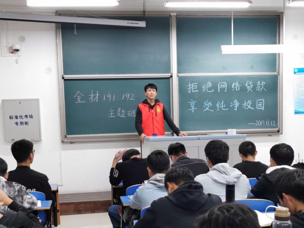 青年志愿者协会于11月12日至13日组织19级各班团支部开展关于“拒绝网络贷款,享受纯净校园”的主题班会。