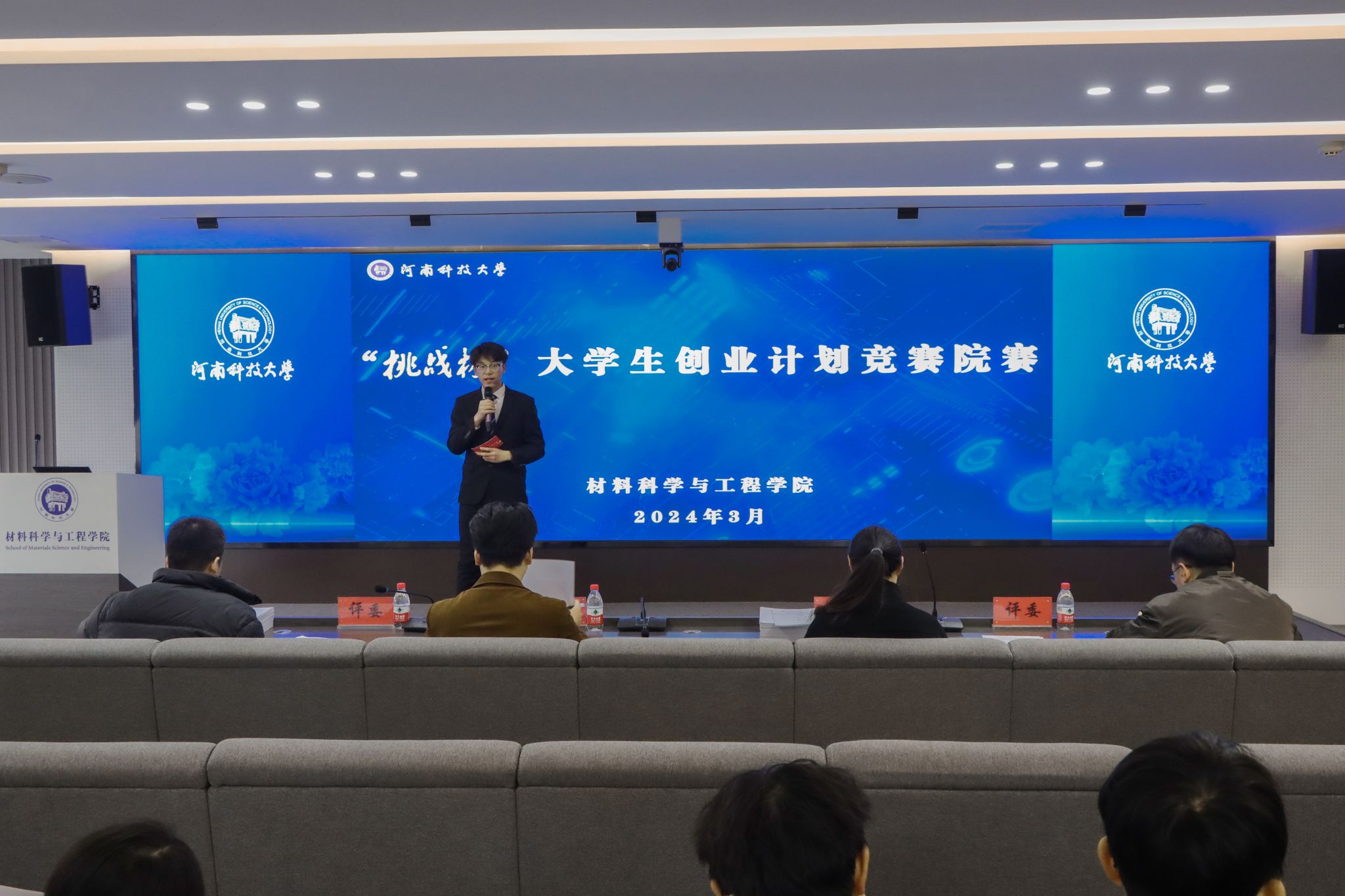 在工科一号楼5059报告厅举办2024年“挑战杯”大学生创业计划大赛选拔赛。
