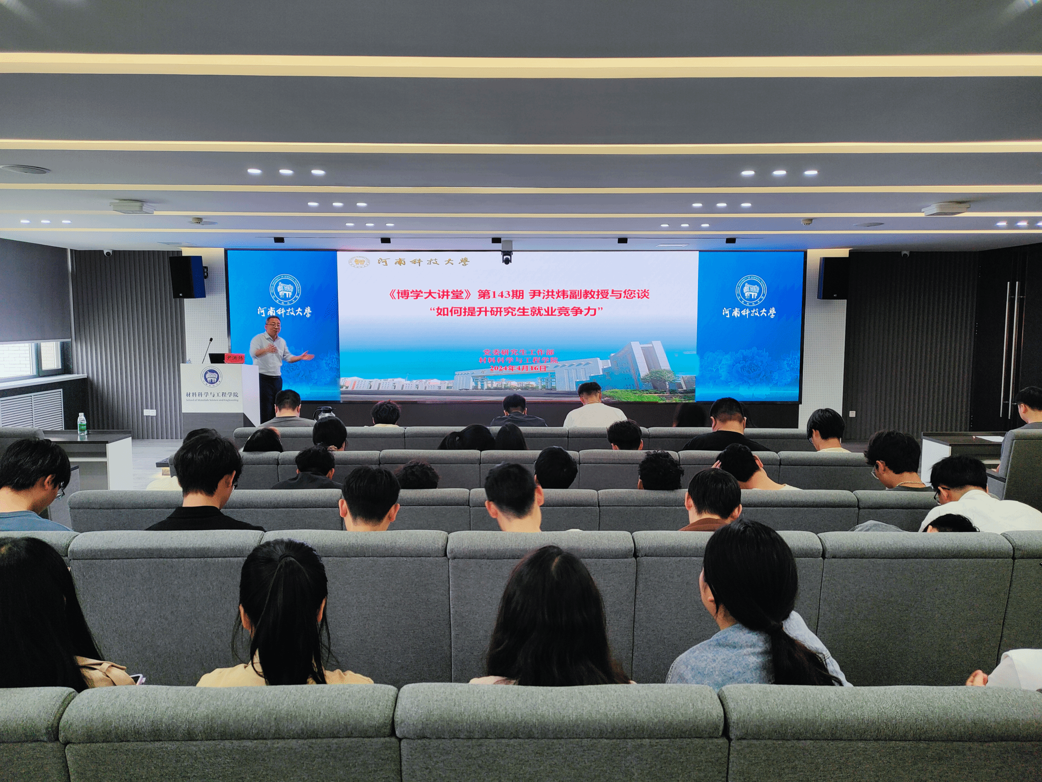 研究生辅导员陈晓亚主持,全校研究生代表参加讲座。