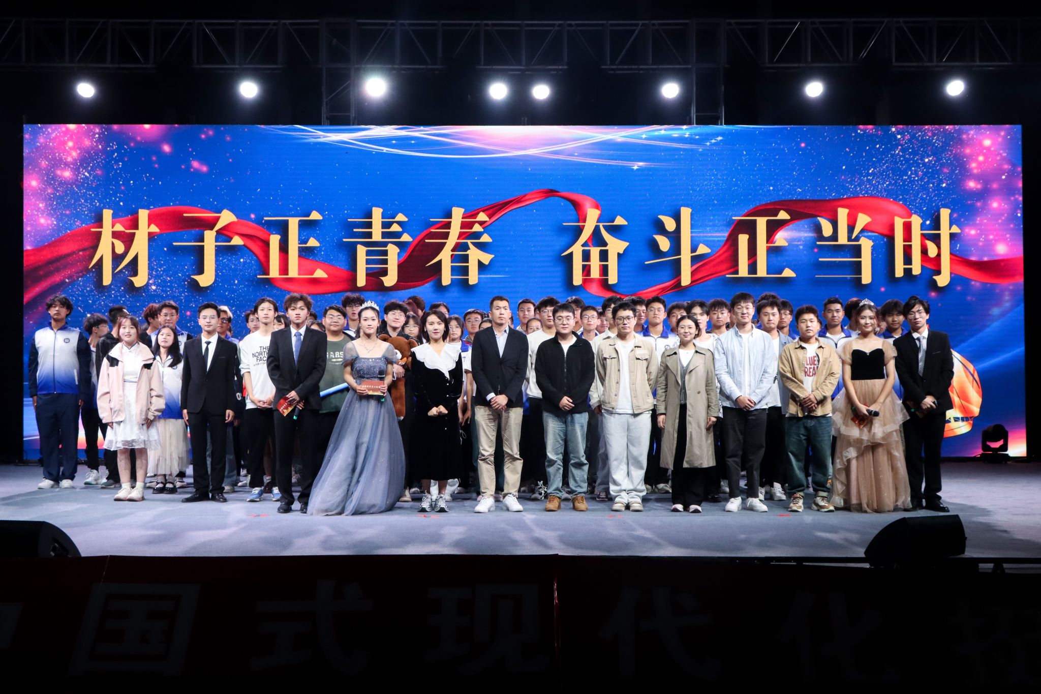 一首激昂的舞蹈《正青春》揭开晚会的序幕,瞬间点燃全场师生的热情;歌曲《思念》《如愿》《听》情感真挚,表达了对四年大学生活的美好期盼;《我爱你中国》朗诵深情而铿锵,歌颂了伟大祖国的山河壮丽、民族团结、繁荣富强,道出了材料学子深厚的爱国主义情怀和对祖国的美好祝愿;相声《倒打灯谜》通过独特的艺术形式引得观众爆笑连连,掌声不断。整场晚会精彩纷呈,欢乐的气氛、年轻的激情、精彩的表演感染在场的每一位观众,掀起一个又一个高潮,让观众们深深陶醉。晚会在大合唱《我和我的祖国》中圆满落下帷幕。
