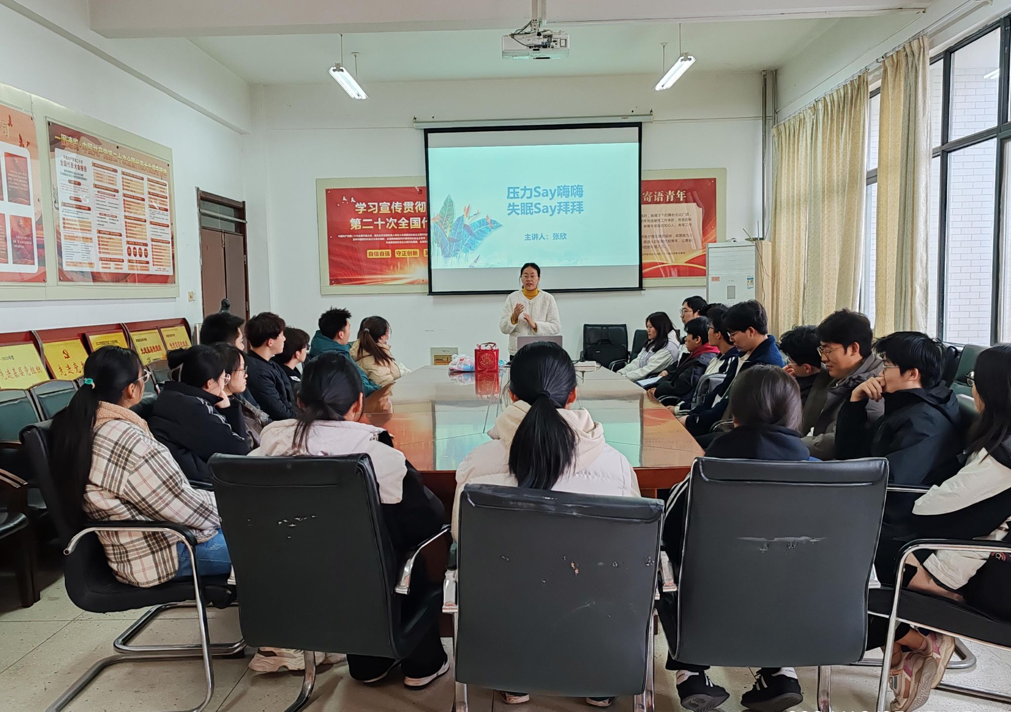 裴丽以“如何成为一名优秀的学生干部”为主题,探讨学生干部的角色定位、影响学生干部作用发挥的主要因素、学生干部应该具备的基本素质、应该树立的基本意识等问题,并对如何做一名优秀的学生干部提出建议。张欣以“压力Say嗨嗨,失眠Say拜拜”为主题,通过小游戏“大风吹,小风吹”,活跃现场氛围,并讲解了实用的心理学知识,参与的同学纷纷表示学到了放松的方法,知道了怎么释放压力、如何面对压力,内心很愉悦、很轻松。李嘉琦以“规划这件事,事半功倍的利器”为主题,探讨如何帮助学生找准个人定位、明确职业目标、确定行动方向,揭示实战经验中的答案,为同学们的职业规划提供指导。