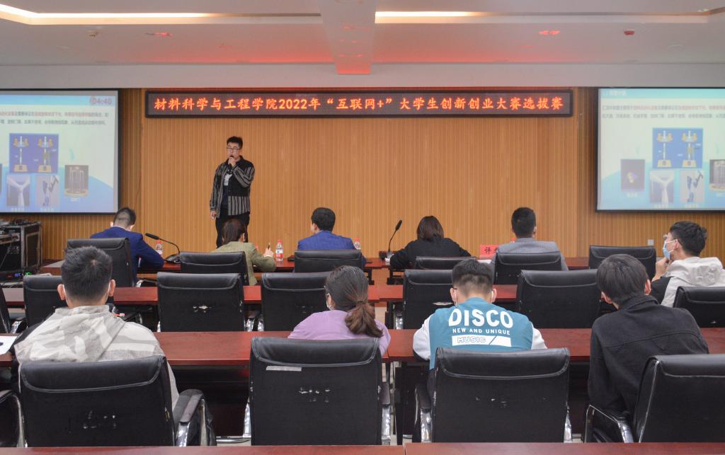 于工科一号楼5059会议室举办2022年“互联网+”大学生创新创业大赛选拔赛。