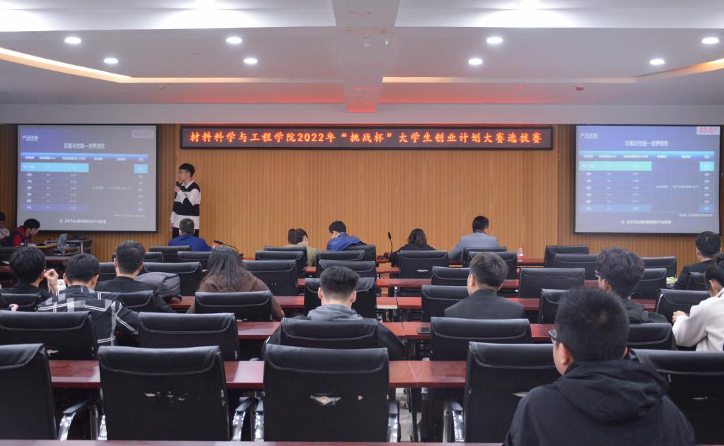 在工科一号楼5059报告厅举办2022年“挑战杯”大学生创业计划大赛选拔赛。