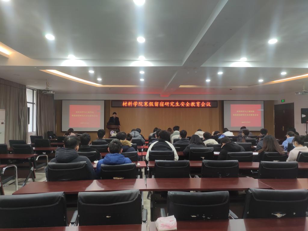 于2022年1月11日在工科1号楼5059会议室召开寒假留宿研究生安全教育会议,会议由主管研究生副院长皇涛主讲,全体留宿研究生参加。