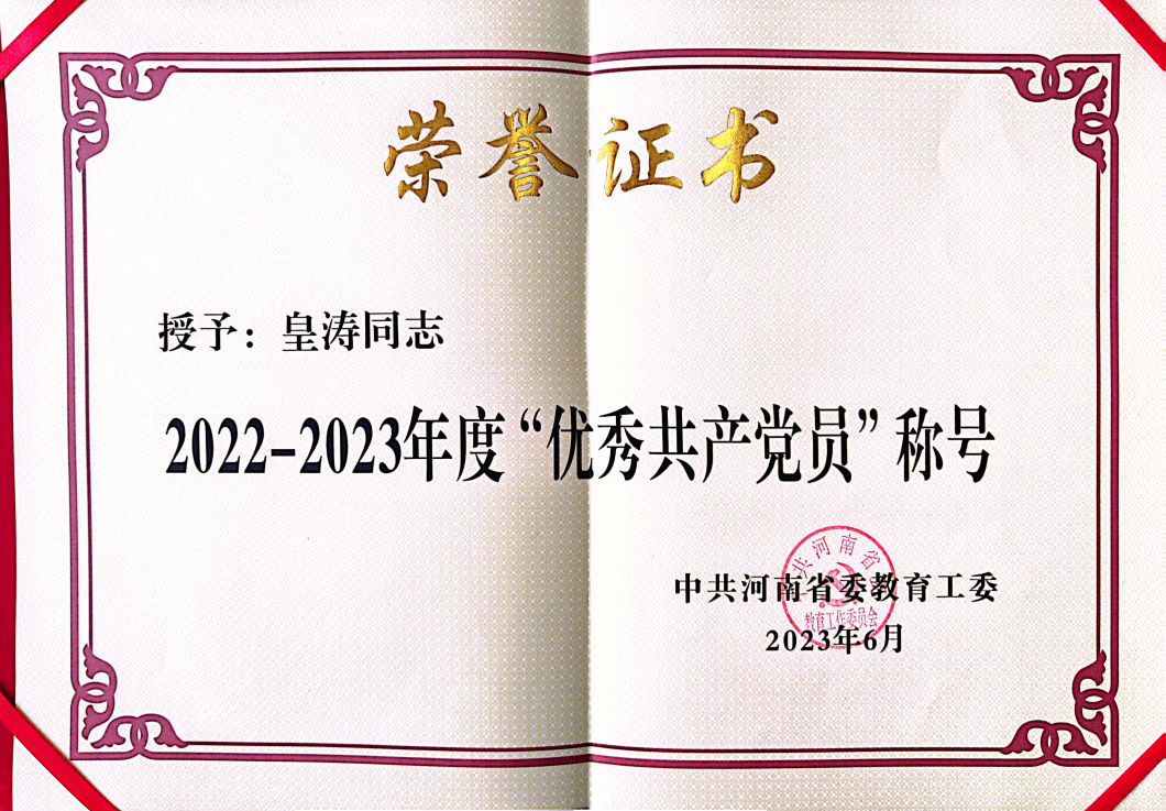 党委和塑性成型系党支部分别荣获“河南省高等学校先进基层党组织”称号,皇涛老师荣获“河南省高等学校优秀共产党员”称号。