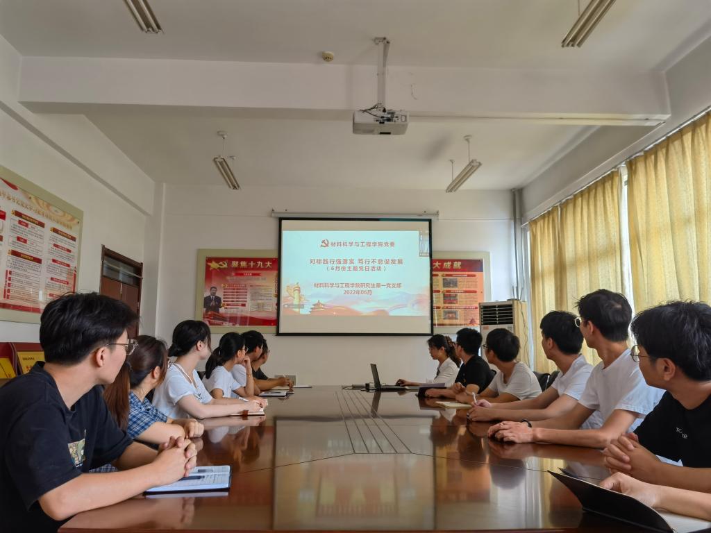 研究生第一党支部在工科1-203会议室,通过线上线下相结合的形式,召开“对标践行强落实 笃行不怠促发展”主题党日活动。活动由党支部书记马红燕主持,支部全体成员参加。