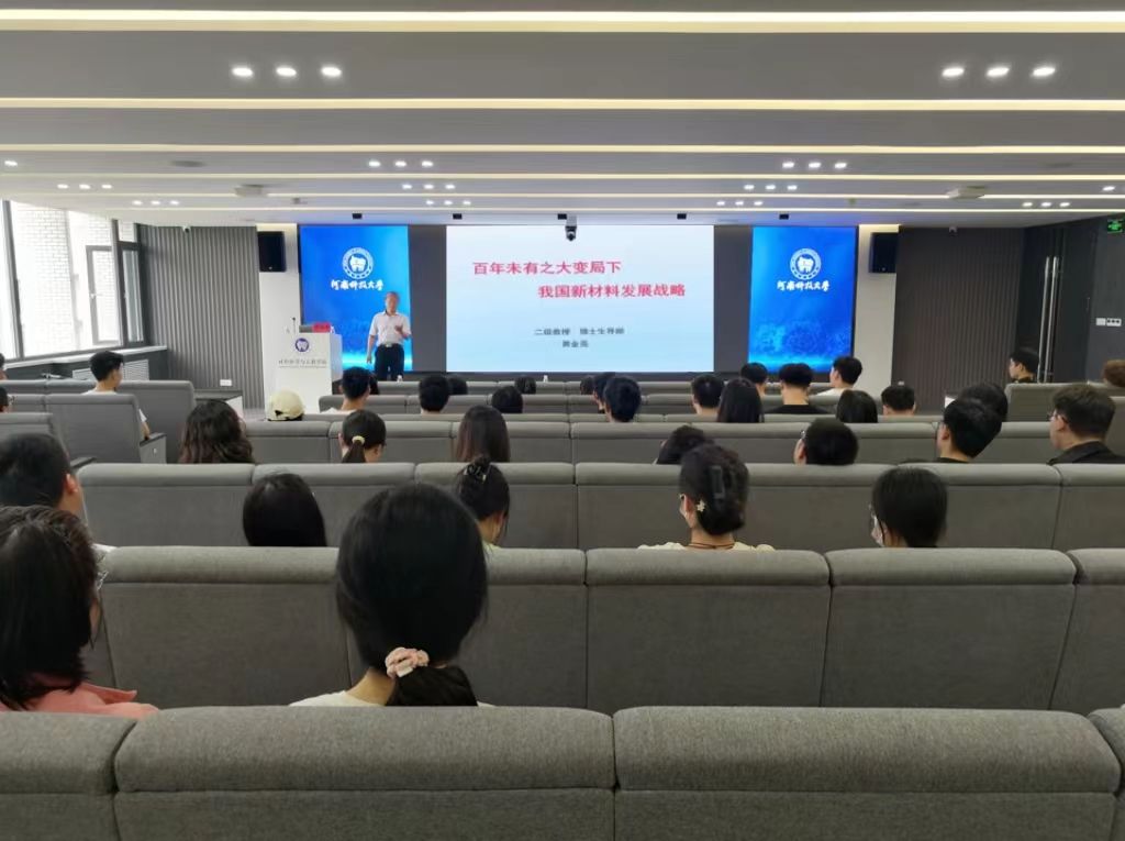 黄金亮教授首先通过对当前世界百年未有之大变局的分析,突出强调了科技是国之利器,国家赖之以强,企业赖之以赢,人民生活赖之以好,科技自立自强是国家强盛之基、安全之要。随后他从纳米药物导向剂、超级钢、碳纤维和隐身涂层等新材料发展变化及其重要作用入手,深入浅出的阐述了新材料技术对新一轮科技革命和产业革命的重大战略意义和我国在新材料技术领域面临的重大挑战。最后,他通过具体事例,从先进基础材料重点发展领域、关键战略材料重点发展领域和前沿材料等三个层面简要介绍了我国新材料的发展战略,使同学们对自己的专业发展前景充满信心和期待。